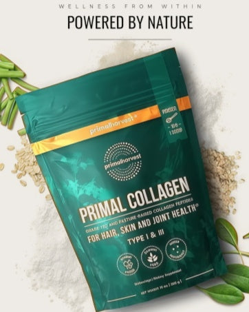 Primal Collagen, made with grass-fed, pasture-raised collagen, helps smooth skin, strengthen hair, and support joints with a neutral-tasting formula that blends effortlessly into your daily routine.*