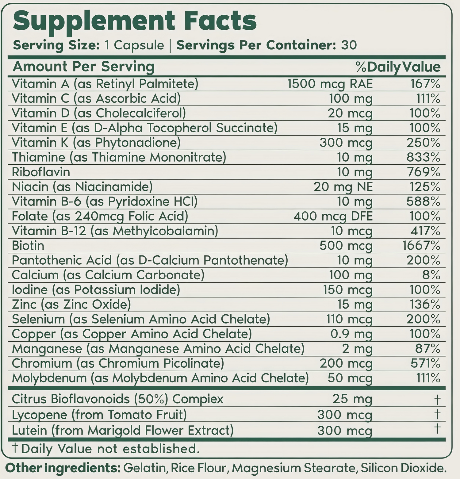 This convenient once-a-day multivitamin contains immune-supporting nutrients like vitamin C, vitamin D, and zinc to help maintain healthy immune responses.